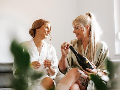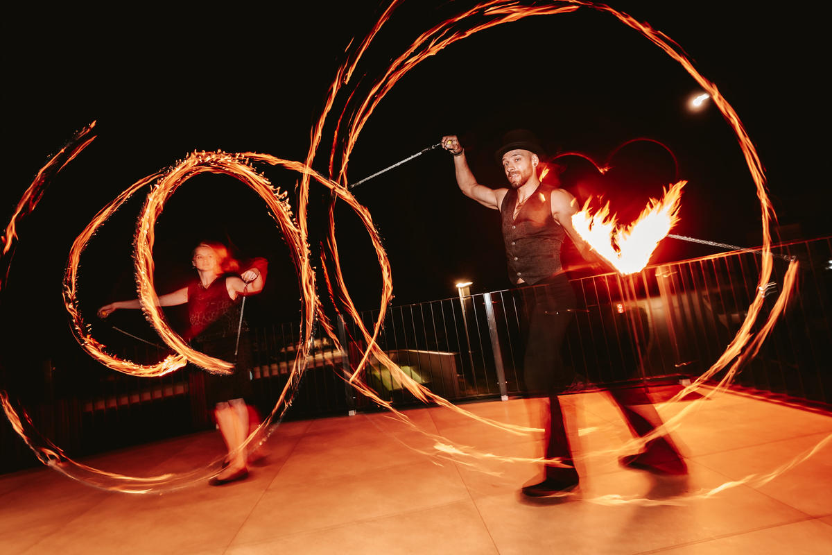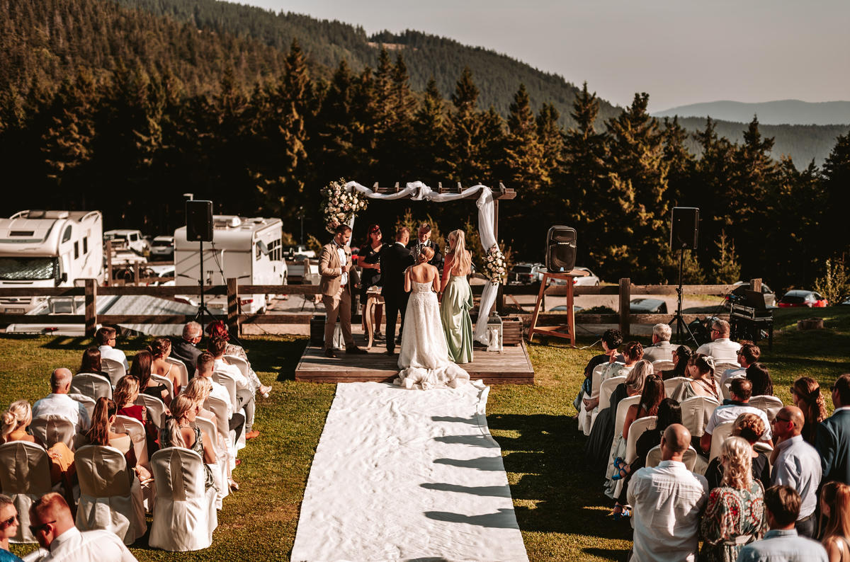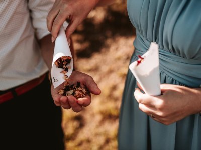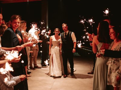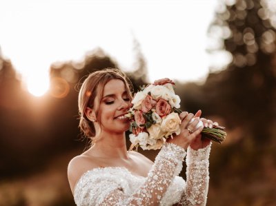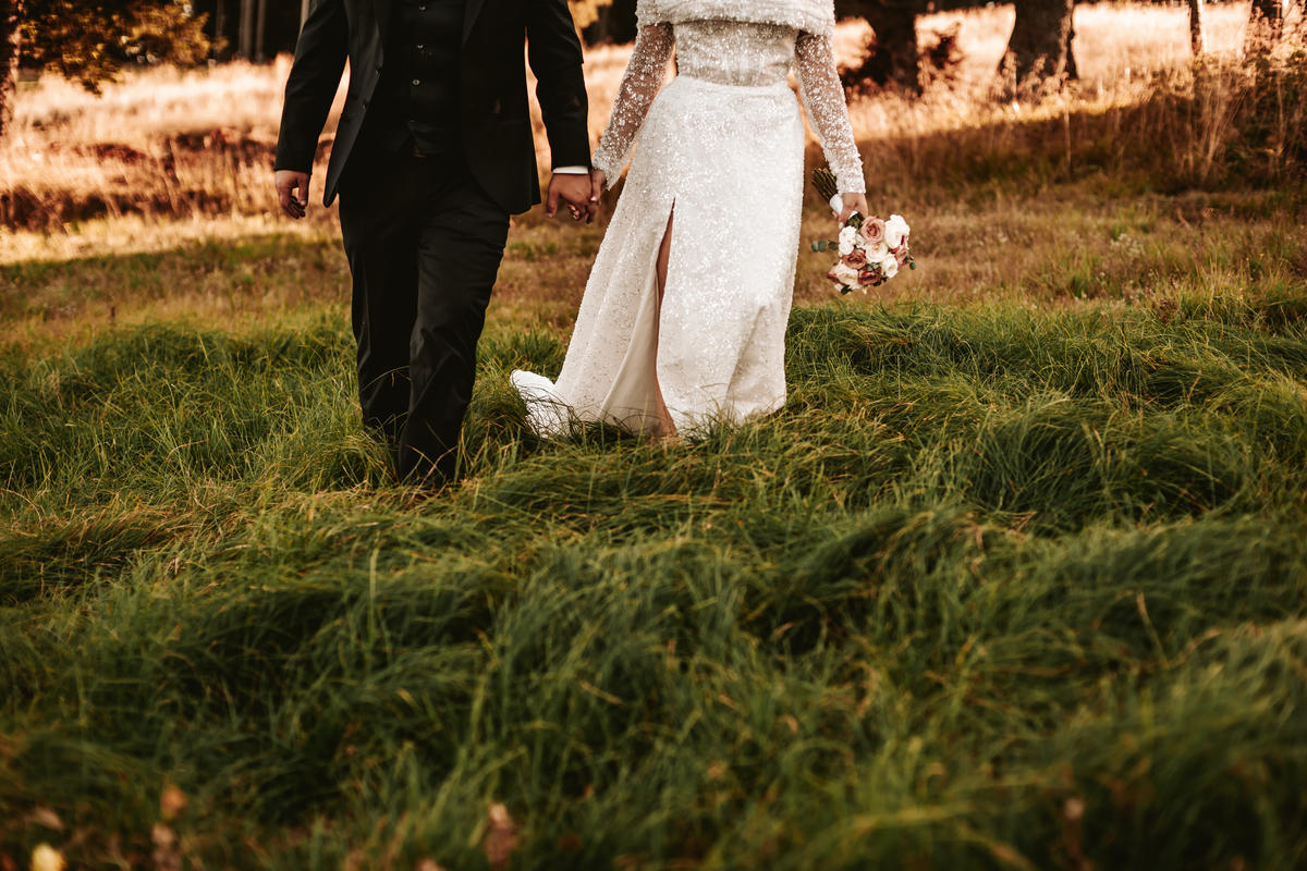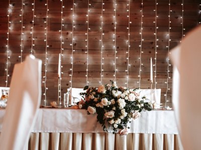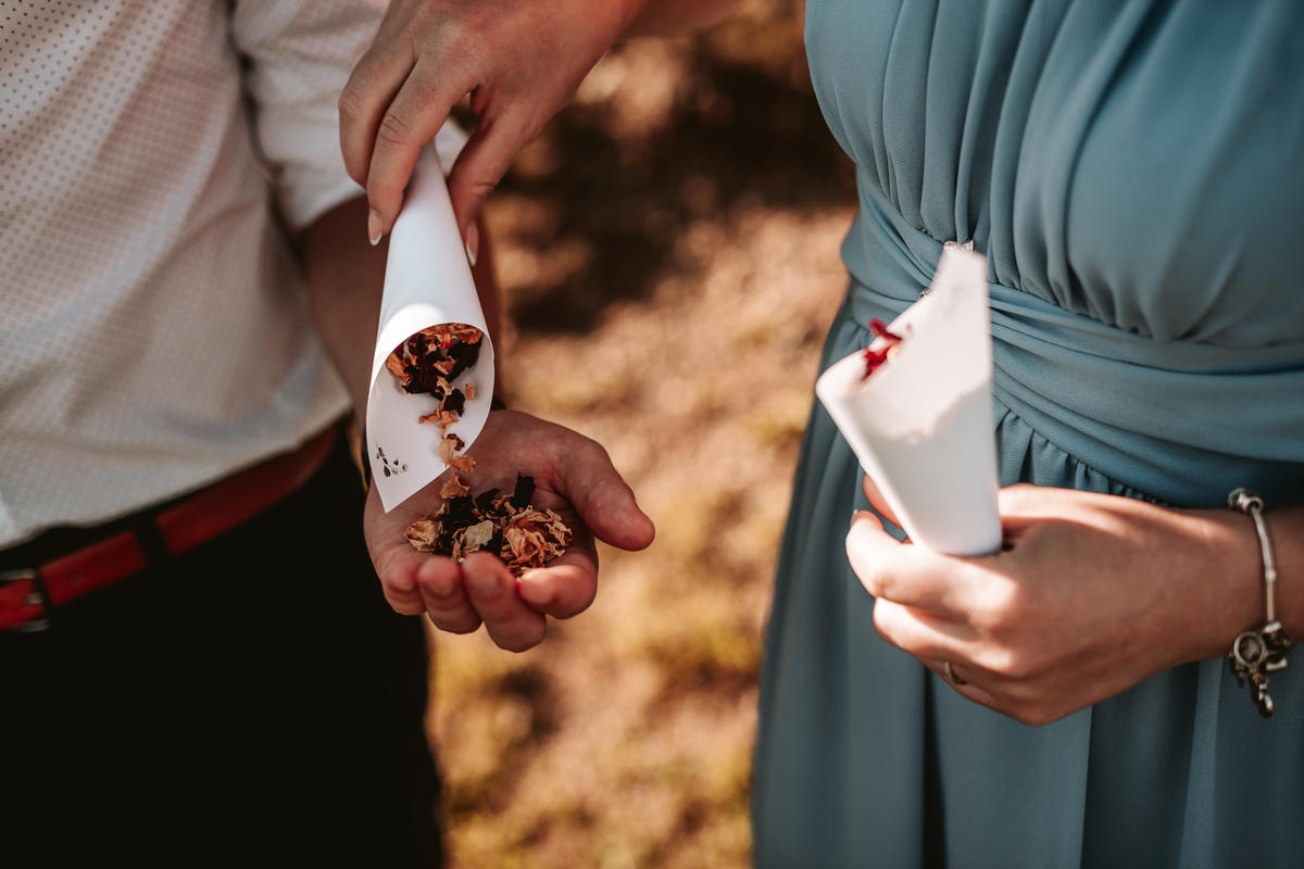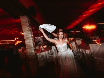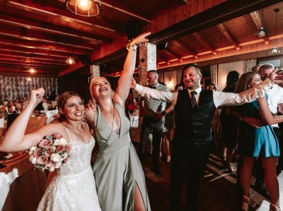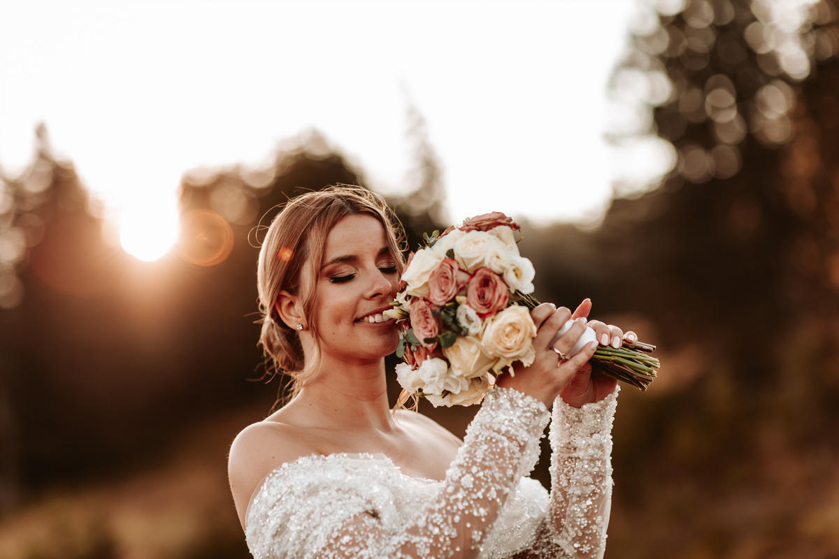 Na Kopah je sledil civilni poročni obred, ki ga je s svojim petjem še polepšala mlada pevka Iza. Uradni del je potekal kje drugje kot na prostem, s čudovitim razgledom na planino in vrhove smrek. Fotografiranje para smo izvedli na planini, ob jezeru in na vrhu Pungarta, medtem ko smo večer z razrezom torte zaključili ob čarobni sceni na terasi v družbi zvezdnatega neba in iskric. Ob zvokih ansambla Juhej in posebnem nastopu Luke Basija je poroka potekala v iskrivem razpoloženju – polna smeha, topline in veselja.