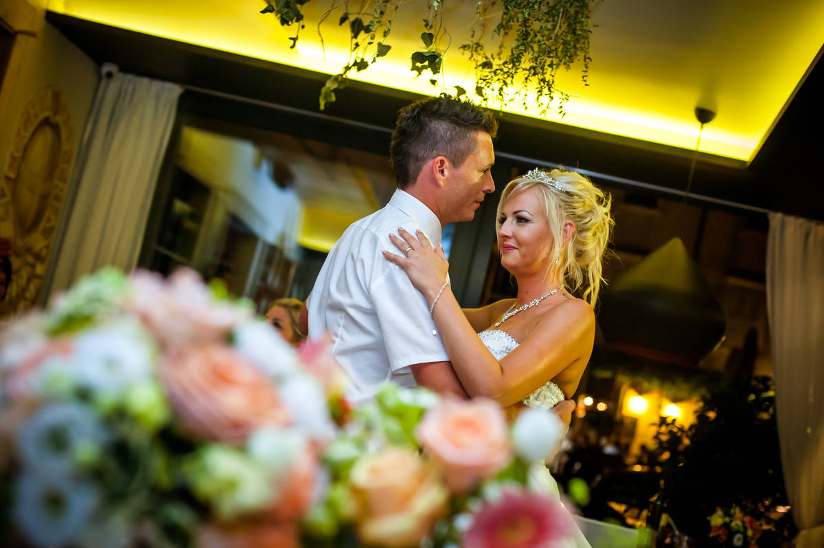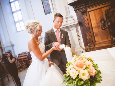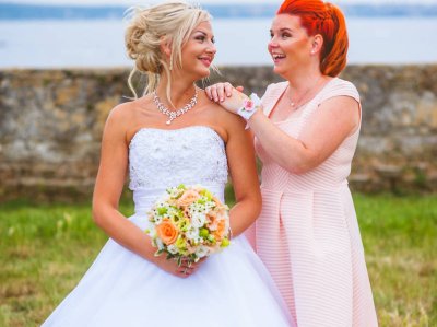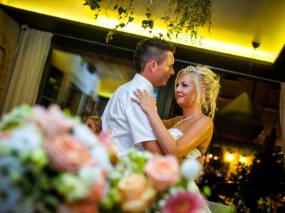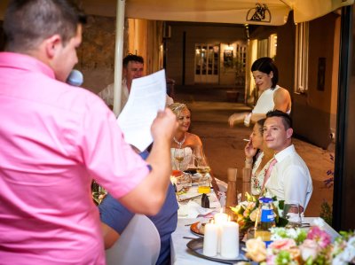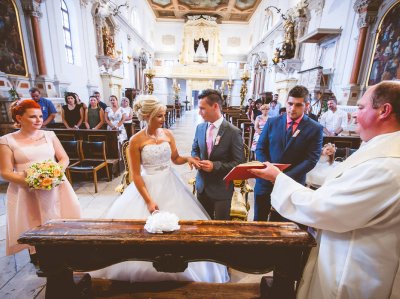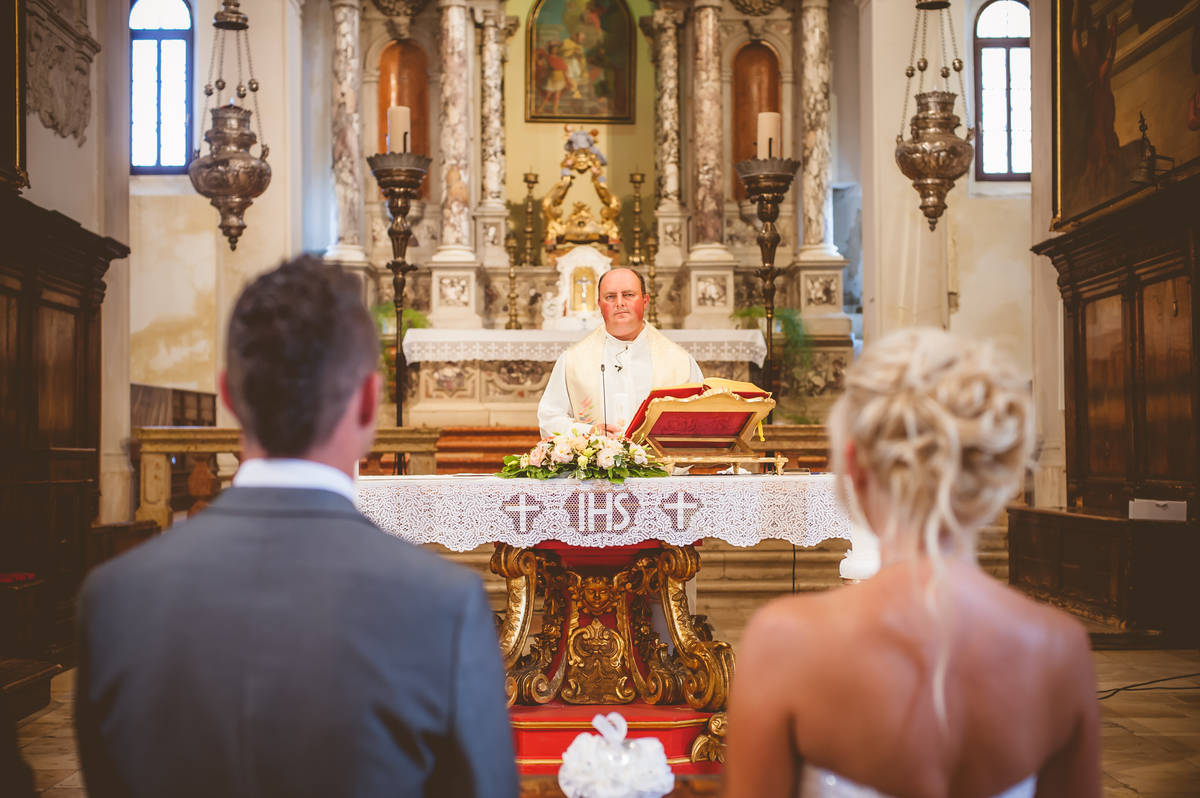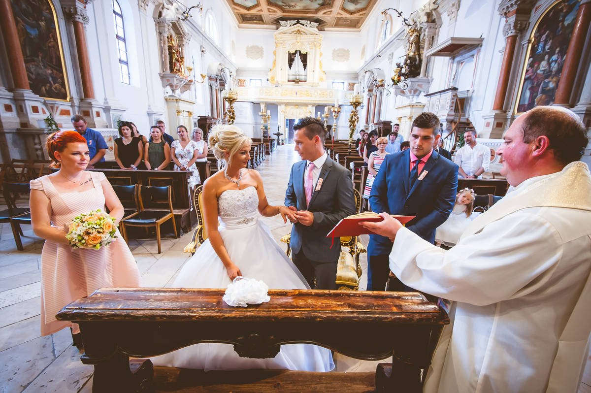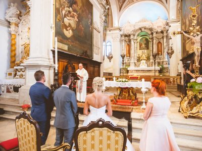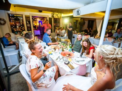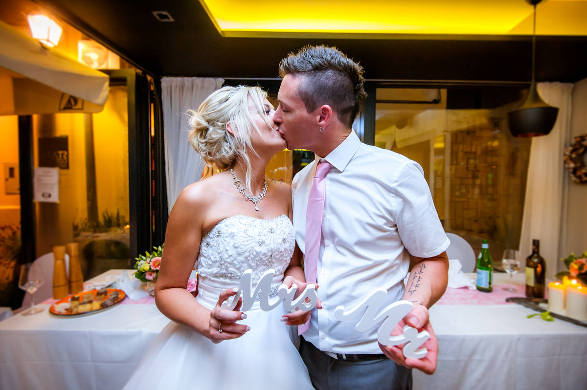 Obred je potekal na strehi hotela Piran. Galebi so letali nad nami, veter je nežno pihal in vonj po morju in soli je napolnil zrak. Tisti prizor, ko si dva izmenjata obljubo ob obali – brez odvečnega blišča, samo ljubezen, nebo in morje – vedno znova spomni, zakaj imam ta poklic tako rad. Po obredu smo se povzpeli še do Cerkve sv. Jurija kjer sta svojo zvestobo potrdila še pred Bogom. Pogled s cerkvenega obzidja visoko nad morjem pove vse - to mesto ima dušo.